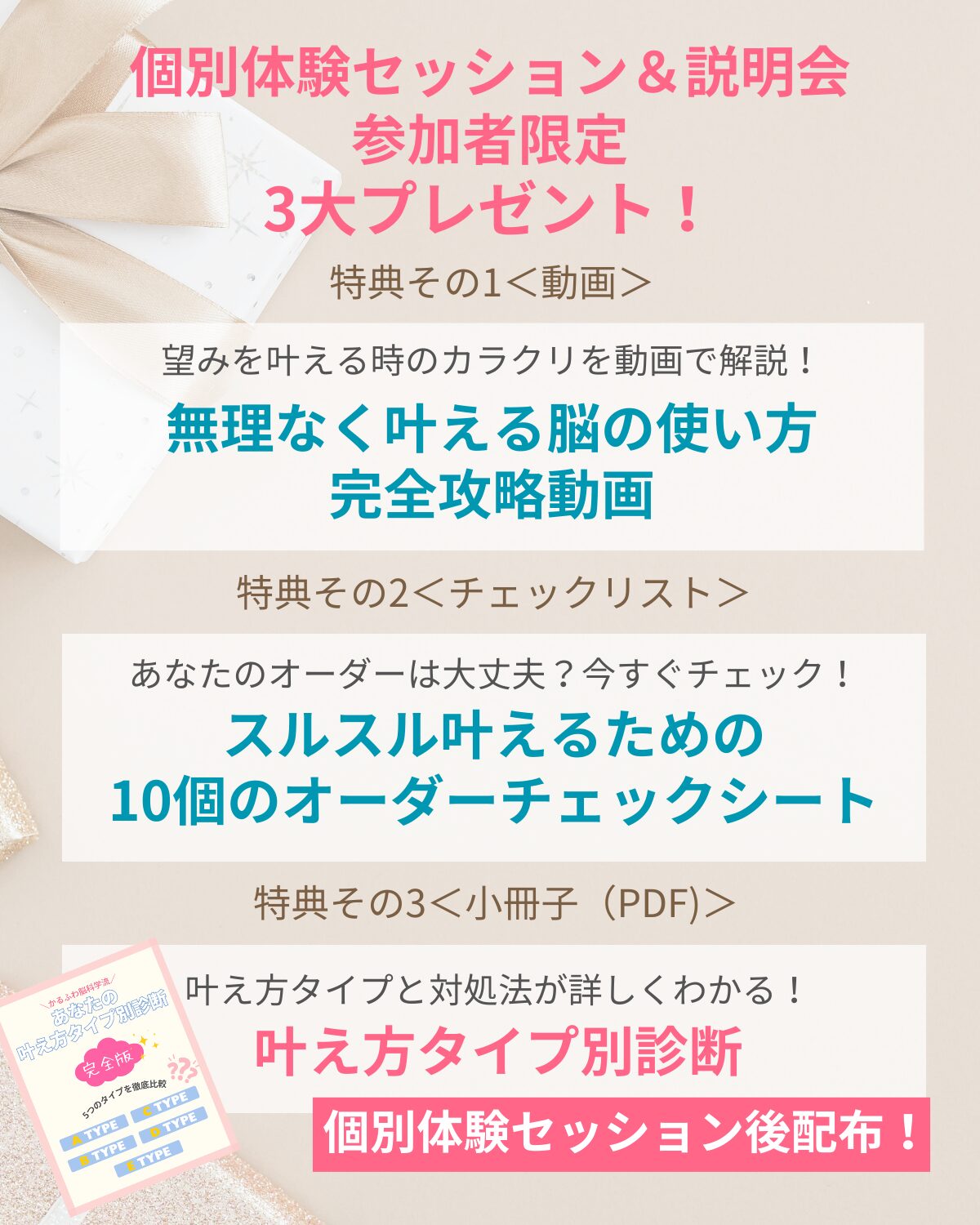 叶え方タイプ別診断付き個別体験セッション&説明会